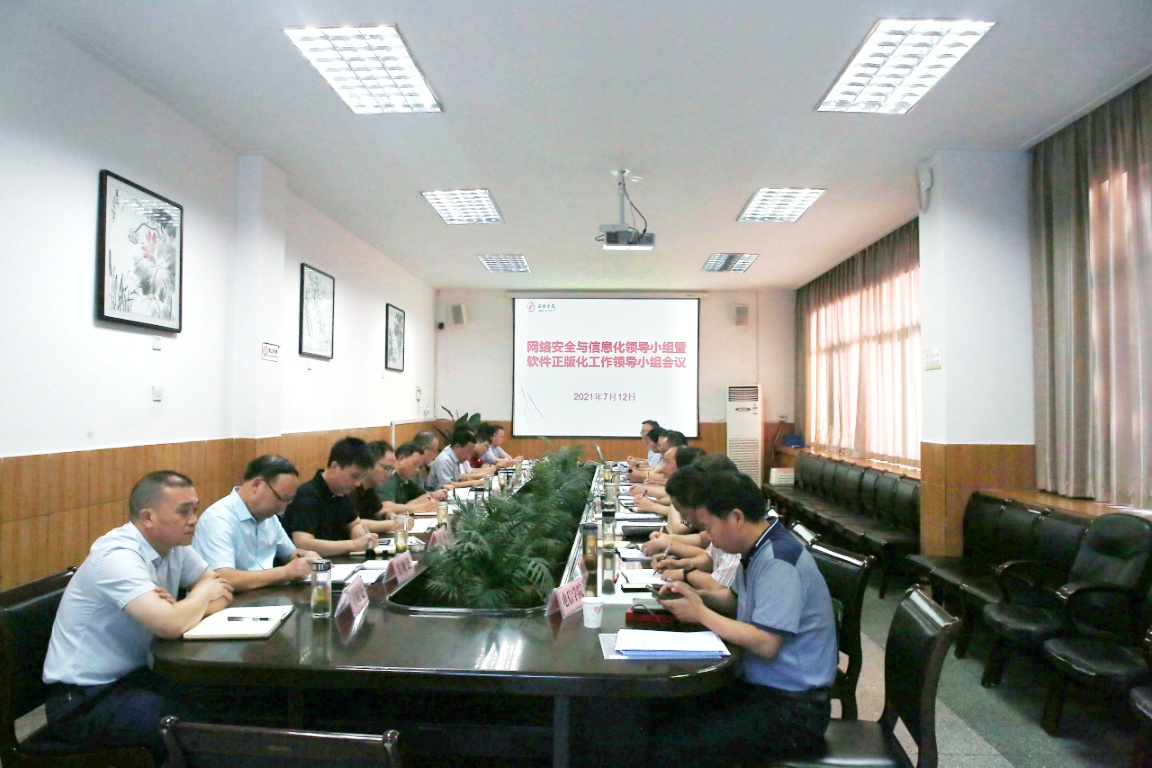 7月12日下午,我校召开了网络安全与信息化领导小组暨软件正版化工作领导小组会议。学校网络安全与信息化领导小组组长丁巨涛、钟生海,副组长胡波、张东红以及领导小组成员单位负责人参加了会议。会议由钟生海主持。