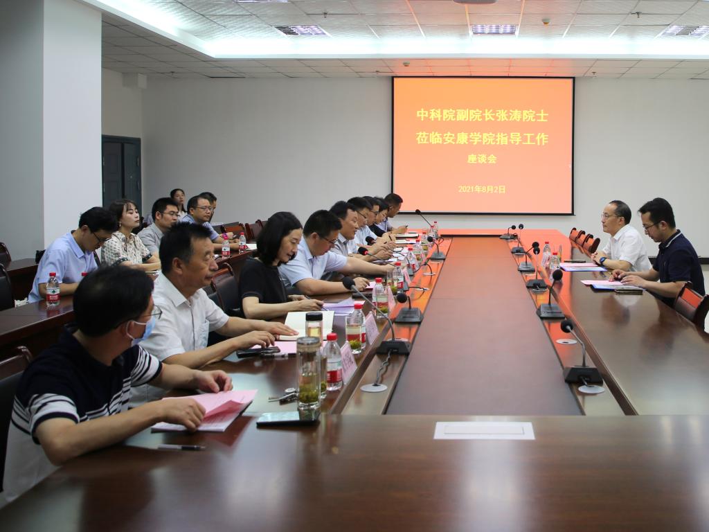 钟生海对张涛院士一行来校表示欢迎,介绍了我校历史沿革、办学方向、学科特色、专业结构、人才培养、深化校地合作情况。他讲到,张涛院士来校指导工作,是提升学校教育教学、科学研究和办学水平的好机会,对实现学校高质量发展具有重要促进意义,恳请张涛院士在人才培养、学科建设和科学研究、服务地方等方面给予指导和帮助。他表示,学校将秉持“艰苦创业、团结奉献;守正创新、追求卓越”的安康学院精神,围绕全面提高人才培养质量、奋力实现办学层次提升的总任务,认真学习落实张涛院士的指导意见,建成有特色、高品质、国内一流应用型本科院校。