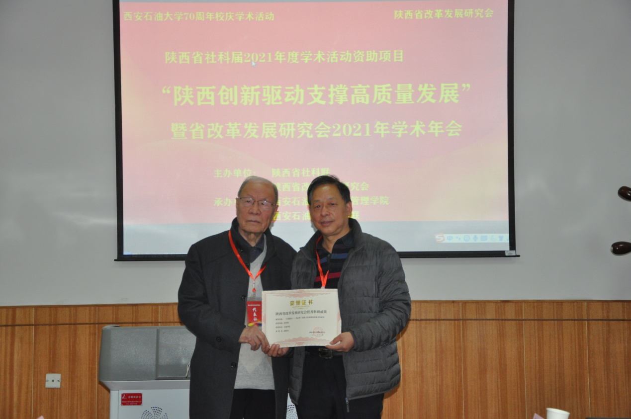 11月12日,由陕西省社科联、陕西省改革发展研究会主办,西安石油大学经济管理学院、西安石油大学社科联承办的“陕西创新驱动支撑高质量发展”暨陕西省改革发展研究会2021年学术年会在西安石油大学举行,250余人通过线下线上参加了会议。我校赵临龙教授作为陕西省改革发展研究会副会长在西安石油大学主会场参加会议。