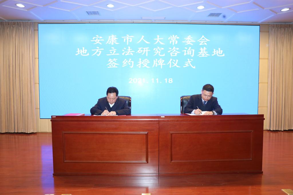 为深入学习贯彻中央人大工作会议精神,进一步推进科学立法、民主立法、依法立法,坚持全过程人民民主,提高地方立法质量,11月18日,市人大常委会在市人大会议室召开安康市地方立法研究咨询基地授牌仪式暨“科学立法、民主立法”培训会、“小切口”立法工作座谈会。全国人大常委会法制工作委员会民法室副主任,安康市委常委,市政府党组成员、副市长(挂职)石宏出席会议。我校马克思主义学院院长单林波、副院长韩晔受邀参加会议。