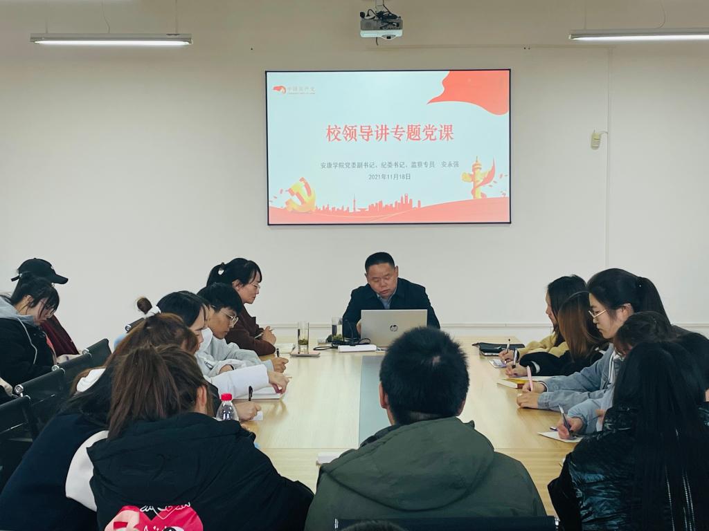 11月18日下午,党委副书记、纪委书记、监察专员安永强以《重温党的历史,时刻准备着为实现中华民族伟大复兴的中国梦而奋斗》为题,为马克思主义学院和医学院学生党支部讲专题党课。