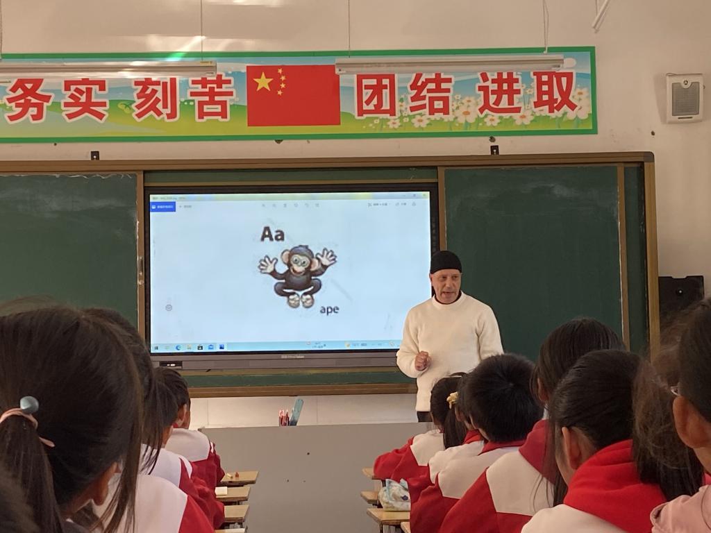 我校归国留学教师王一丹、张煜果及外教Frank Paul Roppon与六年级学生进行了课堂交流,从不同侧面介绍了美国、英国等地的风俗人情、文化景观。老师们幽默风趣的谈吐、活泼独特的交流让孩子们沉浸其中,开括视野的同时也激发了孩子们学习外语的兴趣。