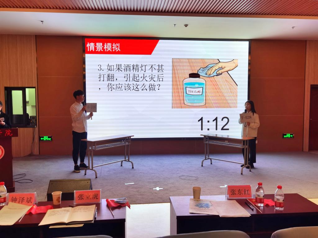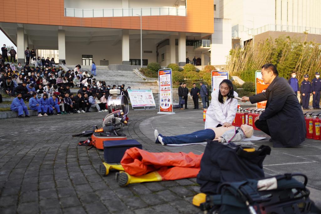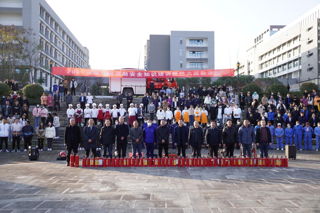 11月18日下午,学校在江北校区湖边广场举行消防安全知识培训暨防火疏散演练活动,校党委副书记胡波做动员讲话;安康市消防救援支队特勤站指战员应邀为我校师生员工做消防救援器材讲解和灭火知识培训;医学院教师做急救知识培训。保卫处、学工部、教务处、后勤保障处、信息化处、农生学院、医学院等二级单位师生及校内服务外包从业人员参加了培训演练。