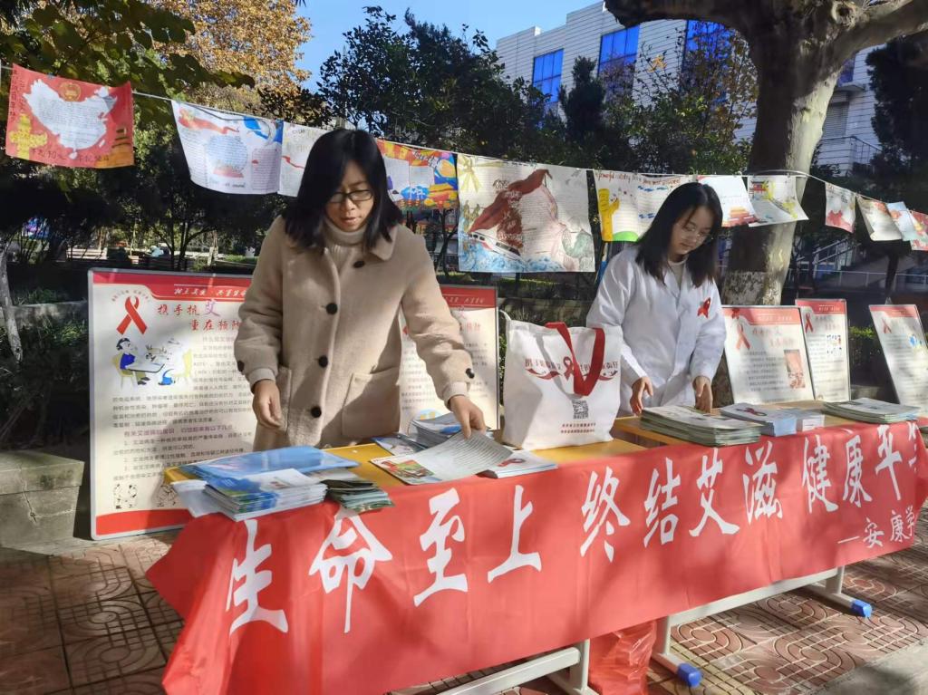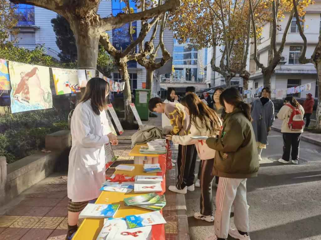 学校通过在LED屏播放宣传标语、校园摆放海报展架、发放艾滋病、冬季传染病防治知识手册、安全套、艾滋病检测试剂盒等形式,广泛宣传相关知识;校医疗保健服务中心工作人员分别在江南校区林荫大道、江南6号教学楼、江北食堂前小广场、江北学生活动中心等4处设立宣传点,现场解答师生疑问,帮助大家正确认识艾滋病、了解冬季易发传染病的预防措施;积极主动联合当地疾控部门及医院专家,举办专题宣讲会、组织开展主题班会等系列活动。