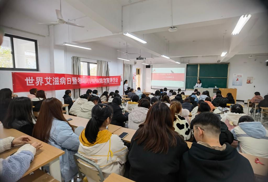 12月1日下午,我校联合安康市疾病预防控制中心在江北校区2102教室开展了以“生命至上 终结艾滋 健康平等”为主题的世界艾滋病日宣传活动。活动中,安康市疾病预防控制中心艾滋病科主治医师马倩做了《生命至上 终结艾滋 健康平等》的艾滋病防治讲座,我校医疗保健服务中心龚晨做了《秋冬季传染病预防》的健康教育讲座。