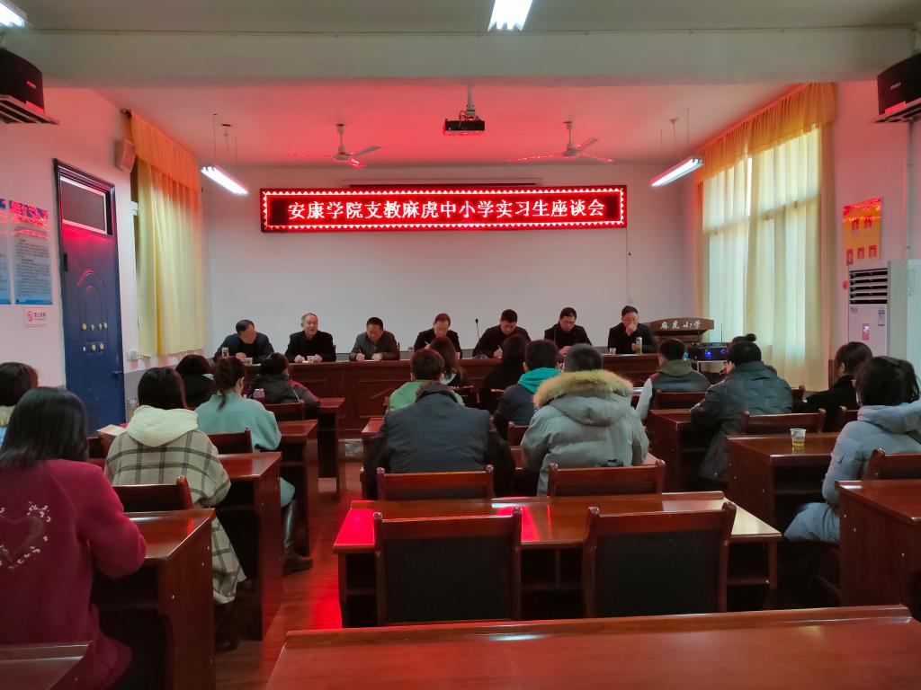 12月3日,白河县麻虎镇支教座谈会在麻虎镇中心小学会议室召开。麻虎镇初级中学、中心小学领导,我校教务处、体育学院相关人员,麻虎初级中学实习生,麻虎镇中心小学实习生参加会议。