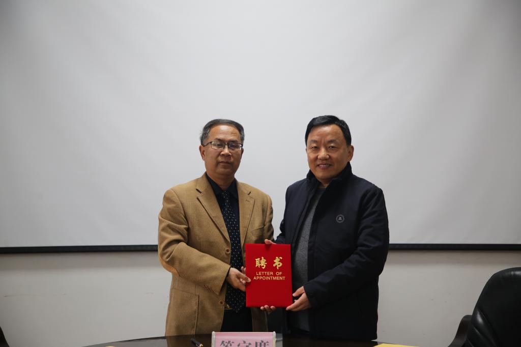 钟生海为蔡云辉教授颁发聘书,签订了聘任协议。