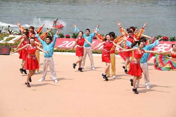 承担开场节目《鼓振金州》的体育系学生和压轴节目《幸福安康》的艺术系师生的精彩表演为整场演出提振了气势和水平,好评如潮;中文系戴承元主任创作《祭屈原文》获专家高度赞扬,该系80名师生在王瑛等老师的指导下齐声恭读,使祭祀仪式达到高潮。学院出色的工作表现和工作成绩得到龙舟节组委会的高度肯定,在“双节”闭幕式上,我院被组委会授予“优秀演出奖”。同时,在科技处、教务处、学工部、保卫处、后勤集团、团委和各院系的共同努力和通力配合下,我院承担的“茶产业发展高端论坛”、4月25日晚“万人品茗”3000名学生方阵、500名志愿者、组建汉水韵茶艺表演队参赛、宾馆接待服务等多项任务都出色完成,受到广泛好评。特别值得提出的是我院组建的“安康学院汉水韵茶艺表演队”在李玉娇、肖宁、邸玲和李建华老师的指导下,在短短的18天时间里,来自教科、艺术、中文、外语、农生等院系的23名同学组成的表演队,集茶艺展示、舞蹈表演、民乐演奏、解说于一体,与来自汉中、安康、商洛等地9支表演队同台竞技,荣获金奖。我院茶艺表演队第一次走出校园,展示风采就获得优异成绩,体现升本以来在汉水文化研究、民乐演奏、艺术表演等方面综合实力的深厚积淀和全面提升。