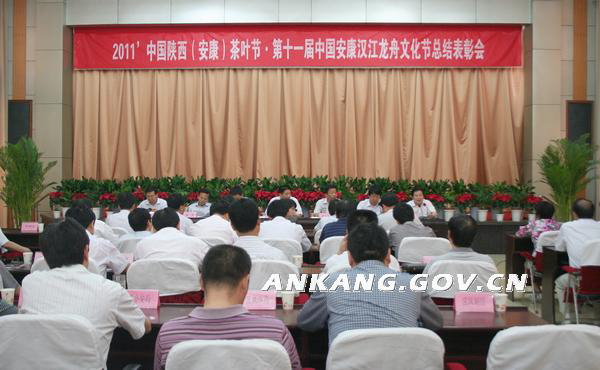 5月9日下午,安康市市召开2011’中国陕西(安康)茶叶节·第十一届中国安康汉江龙舟文化节总结表彰会。市委书记刘建明,市委副书记崔光华在会上讲话,市委常委、政法委书记陈勇,市委常委、市委秘书长薛建兴,市委常委、汉滨区委书记陈勇等市上领导出席会议,副市长邹顺生主持会议。会上授予我院“2011’中国陕西(安康)茶叶节.第十一届中国安康汉江龙舟文化节工作先进集体”荣誉称号,此前我院还被组委会授予“优秀演出奖”,“安康学院汉水韵茶艺表演队”被评为2011’中国陕西(安康)茶叶节泸康杯茶艺表演金奖。