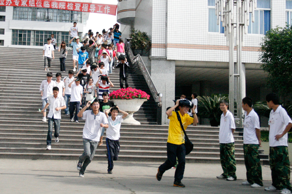 在演练活动上,首先由陕西省地震局地震预报专家、硕士生导师吴富春研究员给参演人员做防震减灾专题报告,专家介绍了地震成因、预警预报及防震减灾技巧等方面的知识。随着演练警报声的响起,参演的师生按照避险、逃生撤离、安置的程序进行了演练。