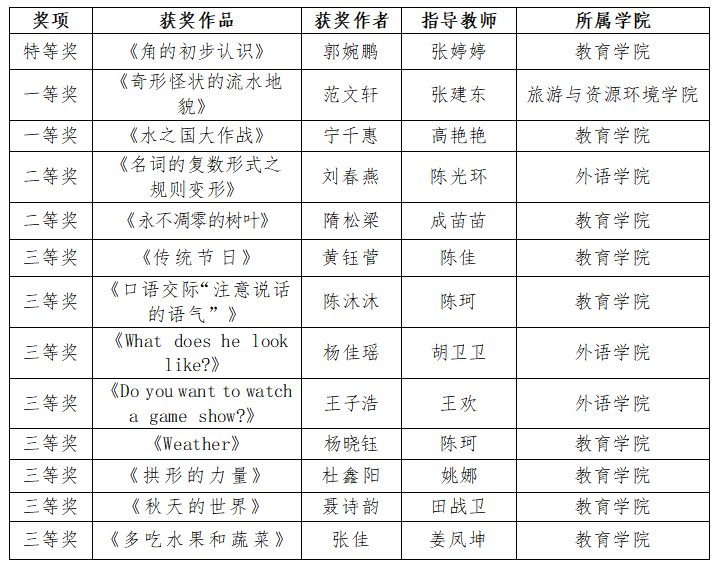 附:“第三届全国师范生微课大赛”我校获奖名单