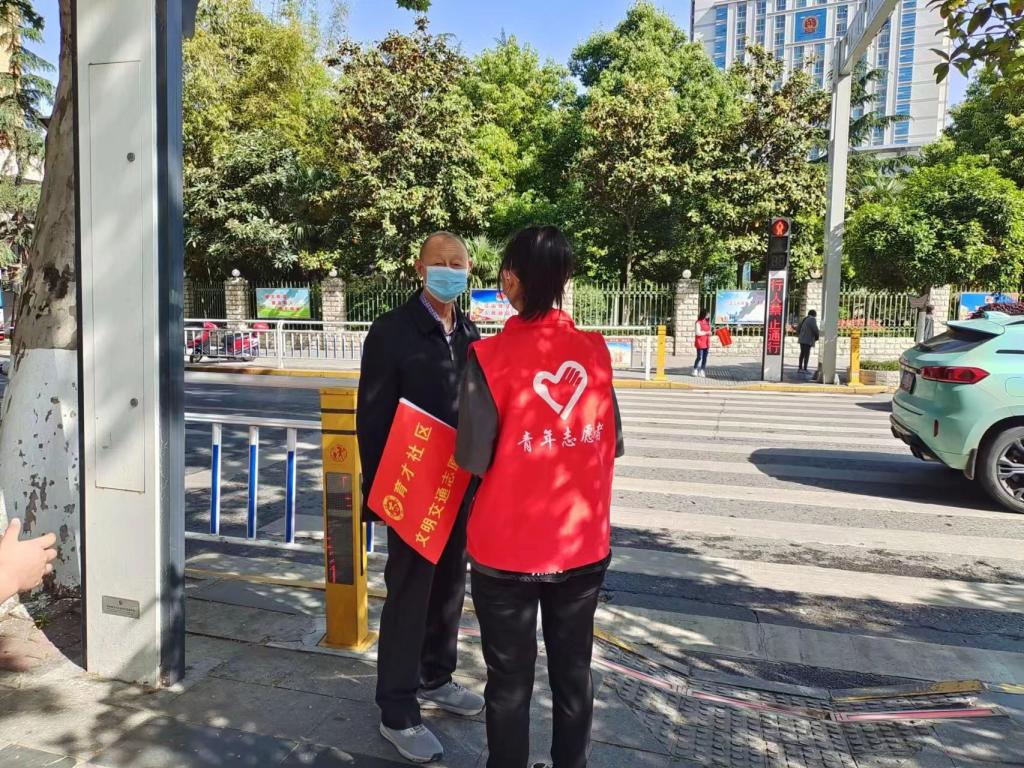 活动当天,学校45名青年志愿者,与育才社区工作人员一起在市政府十字等主要交通路口,提醒广大市民正确规范佩戴口罩,并为未佩戴口罩的群众发放口罩。此外,利用各种渠道和方式宣传倡导社区广大市民少聚集、戴口罩、勤洗手,做好自身防护,共同守护好育才“疫”线文明。同时,我校青年志愿者们还积极协助维护交通秩序,劝阻不文明交通行为。