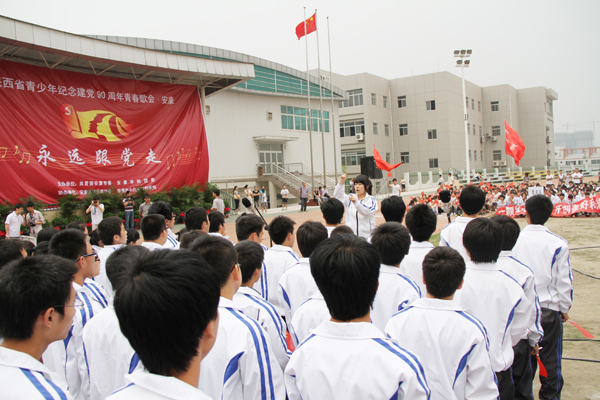 5月20日下午,“永远跟党走”——陕西省青少年庆祝建党90周年青春歌会安康演出活动在安康学院体育场隆重举行。团省委宣传部部长王浩澍、市委宣传部副部长李康林、市委党研室主任梁昌润、汉中团市委副书记徐红菊及安康团市委领导出席了演出活动,来自城区的十个市直团组织和我院11个院系团总支共3000余名团员青年参加了本次演出活动。