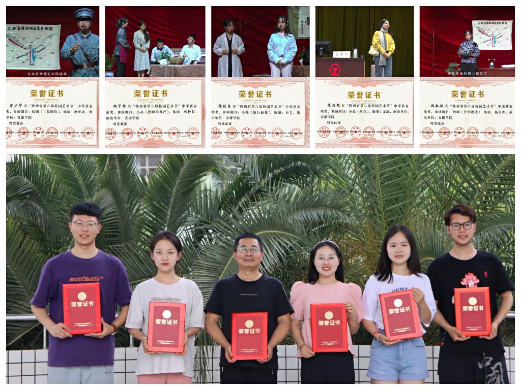 在陕西省第八届校园艺术节上,我校文学与传媒学院师生组织报送的五个参演剧目中四个剧目获奖,集体个人共获得九个奖项,在省级艺术展演中再次为学校赢得荣誉。