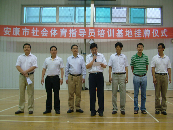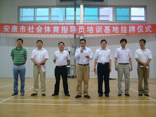 5月27日上午,“安康市社会体育指导员培训基地”挂牌仪式在我院体育馆举行,安康市体育局局长陈元安、副局长柯小明、业务科长贺松林、我院副院长向纪明、体育系领导班子成员及300余名学生参加了挂牌仪式。仪式由体育系党总支书记冯德学主持。