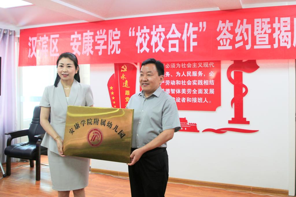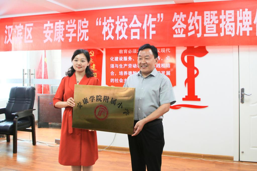 6月15日,安康学院、汉滨区“校校合作”协议签订暨揭牌仪式在汉滨初级中学举行。汉滨区政府区长吴大林、副区长徐兴平、区教体局局长陈钢,安康学院党委书记丁巨涛、校长钟生海、副校长余谦等领导出席签约揭牌仪式。丁巨涛做总结讲话,钟生海为附属学校授牌,余谦与合作学校签约,揭牌仪式由徐兴平主持。