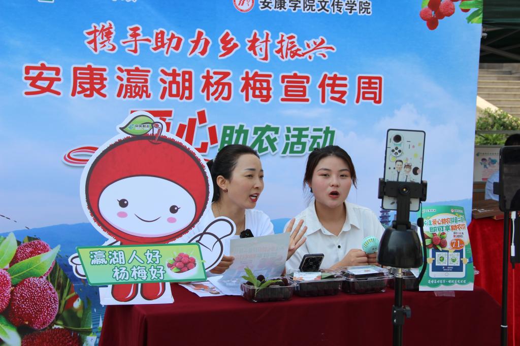 近日,我校文传学院积极发挥网络与新媒体专业优势,携手安康邮政开展了爱心助农活动。通过围绕安康瀛湖枇杷、杨梅等特色产业发展,让学生走向田间地头,共同搭建电商直播间,拓展线上线下销路,帮助当地农民增收,助力乡村振兴。