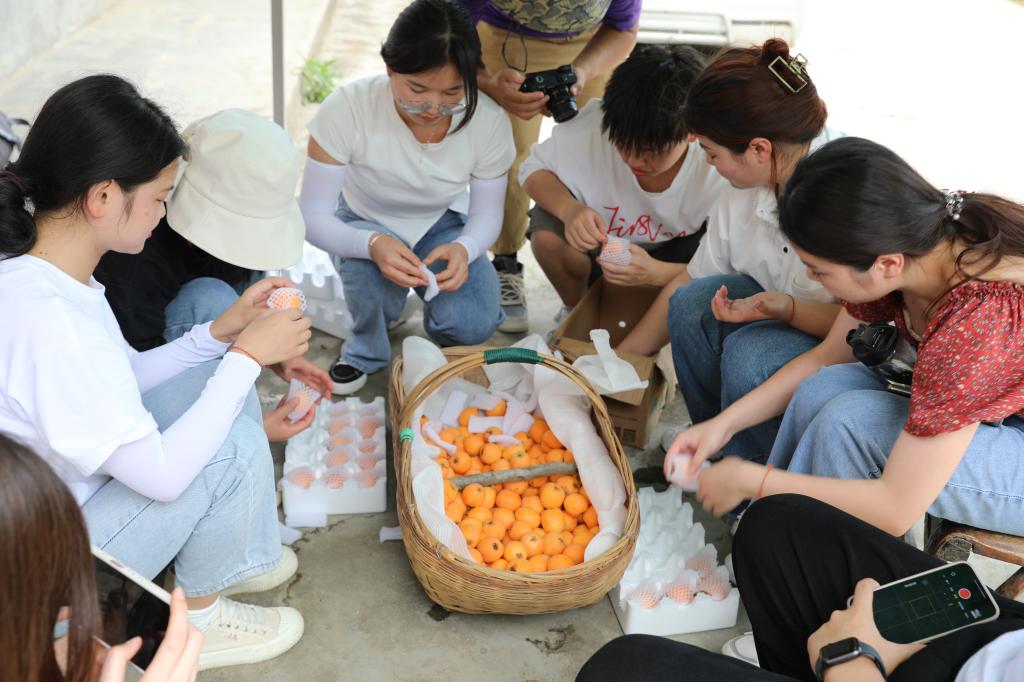 5月中旬以来,文传学院网络与新媒体专业2019级50余名学生,先后分四批次100人次前往瀛湖镇清泉村、洞桥村,在安康邮政公司的协助下,深入到农村果园中、农户家中,与当地农民一起采摘枇杷、杨梅,开展挑选分装打包作业,进行现场直播带货,既锻炼了学生的专业实践能力,也通过校邮携手,切实协助农户破解果子销售难的问题,取得良好效果。