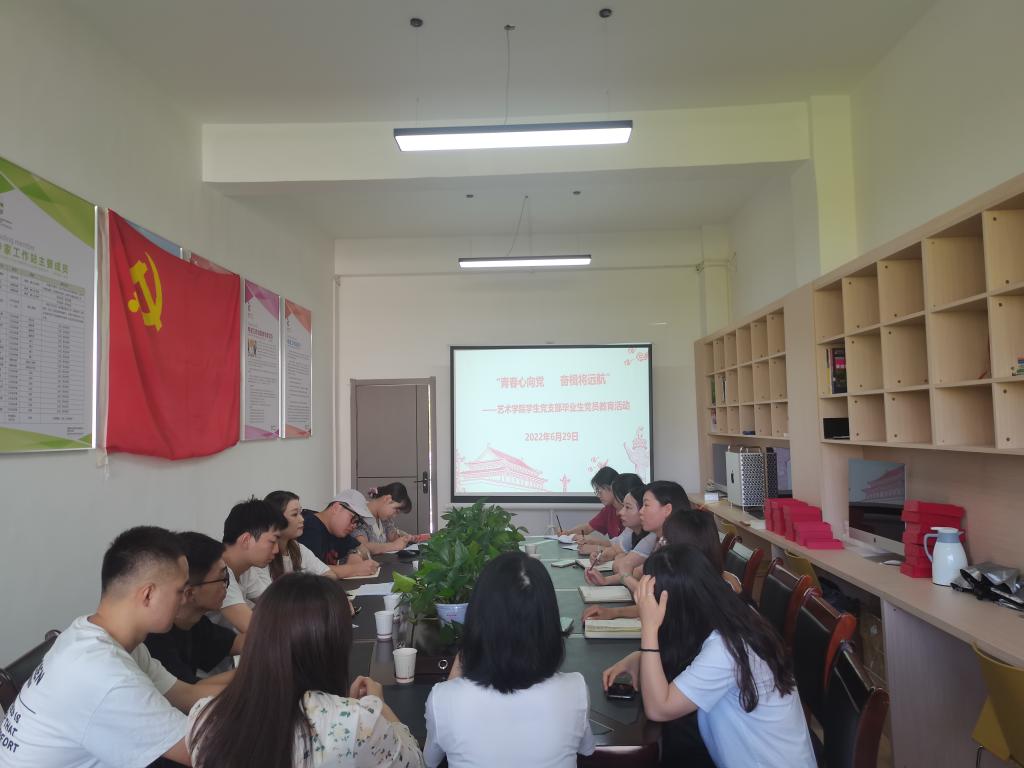 为切实加强毕业生党员教育,增强理想信念,提高党性修养,引导毕业生党员深入认识新时代使命责任,砥砺奋进,担当有为,让青春之花在党和人民最需要的地方绚丽绽放,近日,艺术学院学生党支部面向全体毕业生党员开展了主题为“青春心向党·奋楫将远航”暨毕业生党员教育“七个一”系列活动。