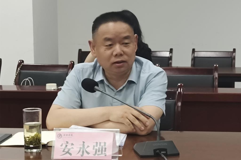 安永强在讲话中指出,“安康微红”既是马克思主义学院一张亮丽的名片,同时也是安康学院一张亮丽的名片,自创建以来取得了显著的成效、对学生的教育效果有目共睹,让学生找到了理论与实践结合的方法,在实践中得到了锻炼。安永强针对“安康微红”的发展提出要求,要全力推进“安康微红”品牌建设,高点定位、系统谋划、合力推动,使“安康微红”教育深入更多师生的心田,让红色文化渗透到学校的每一个角落。要把红色文化教育作为大学生思想政治教育的重要内容,把红色文化教育融入立德树人这一根本任务,努力探索红色文化进教材、进课堂的方式方法。党委宣传部、组织部、纪委等要积极参与,加大支持力度,合力推动“安康微红”建设。广大思政课教师要以思政课教学为抓手,将“安康微红”使用、推广与思政课教学相结合、与教学实践实训相结合,不断增强红色文化教育的实效。要加强宣传、扩大影响,从提升管理层次入手,充分利用全校资源打造品牌,通过举办“安康微红”知识竞赛、知识问答、文化沙龙、研讨交流会,在全校范围聘请指导老师、推送学生等方式方法,进行宣传,扩大影响面。