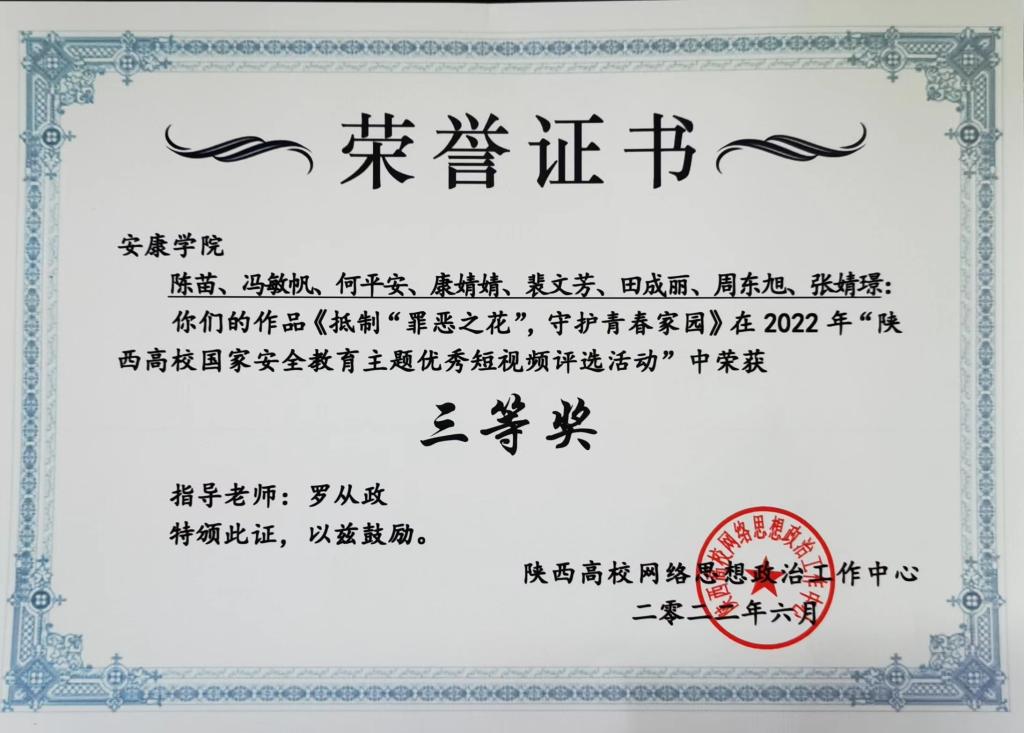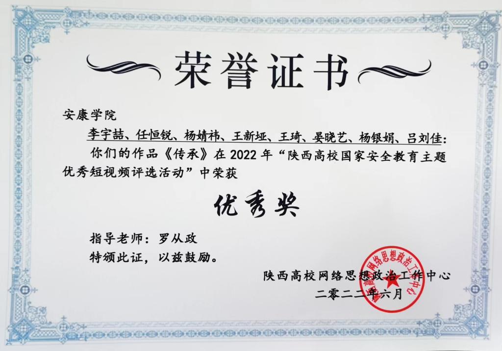 近日,由陕西高校网络思想政治工作中心主办的“2022年陕西高校国家安全教育主题优秀短视频评选活动”结果揭晓,我校易班发展中心推荐的学生作品《抵制“罪恶之花”,守护青春家园》《传承》分别荣获三等奖和优秀奖。