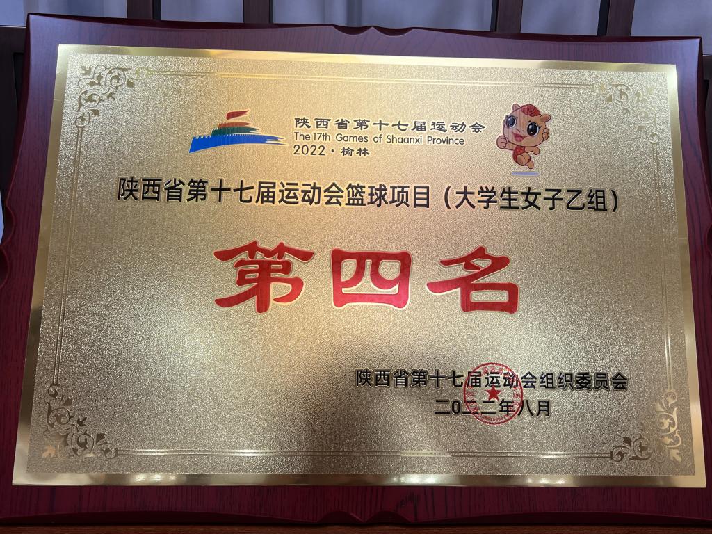 8月11日晚,陕西省第十七届运动会在榆林市体育中心落下帷幕。本届运动会是陕西省参赛人数最多、办赛规模最大、项目设置最全的一届运动会,并首次增设大学生组。我校组队参加了大学生女子乙组(高水平组)篮球比赛,取得第四名的优异成绩,同时被授予体育道德风尚奖。