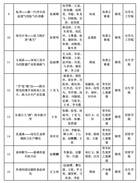 我校经管学院《大健康背景下食药用菌新型精准功能性产品的研发及活性研究》获得产业赛道金奖;经管学院《通过新媒体手段打造乡村与产品品牌,助力乡村振兴》获得产业赛道银奖;化学化工学院《安新电池——钠柔新材料,助力新发展》获得“高教主赛道”银奖。