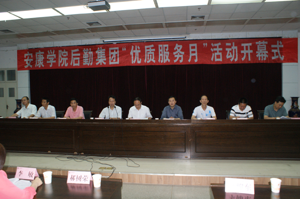 6月2日晚,后勤集团举办的我院后勤保障“优质服务月”活动在东校区图书馆报告厅隆重开幕。学院副院长杨行玉、党委组织部长部胡波、学工部部长郑树青、保卫处处长高立平、数学系党总支书记李延福(后勤集团“五联共建”支部)出席会议,各院系学生代表150余人参加了开幕式。开幕式由后勤集团总经理刘学习主持。