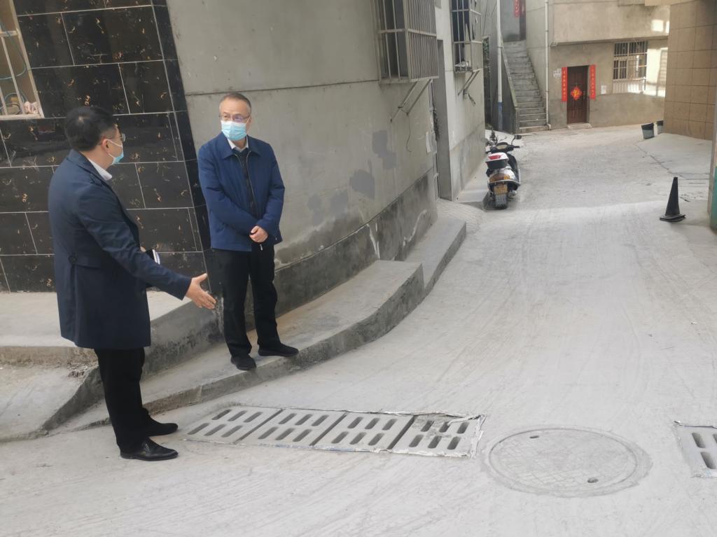 在周台社区,丁巨涛实地察看了学校帮扶整改的社区破损路面情况,与社区干部及创文工作人员交流目前创文工作的短板和不足,并对加快整改和迎检工作演练等进行指导。
