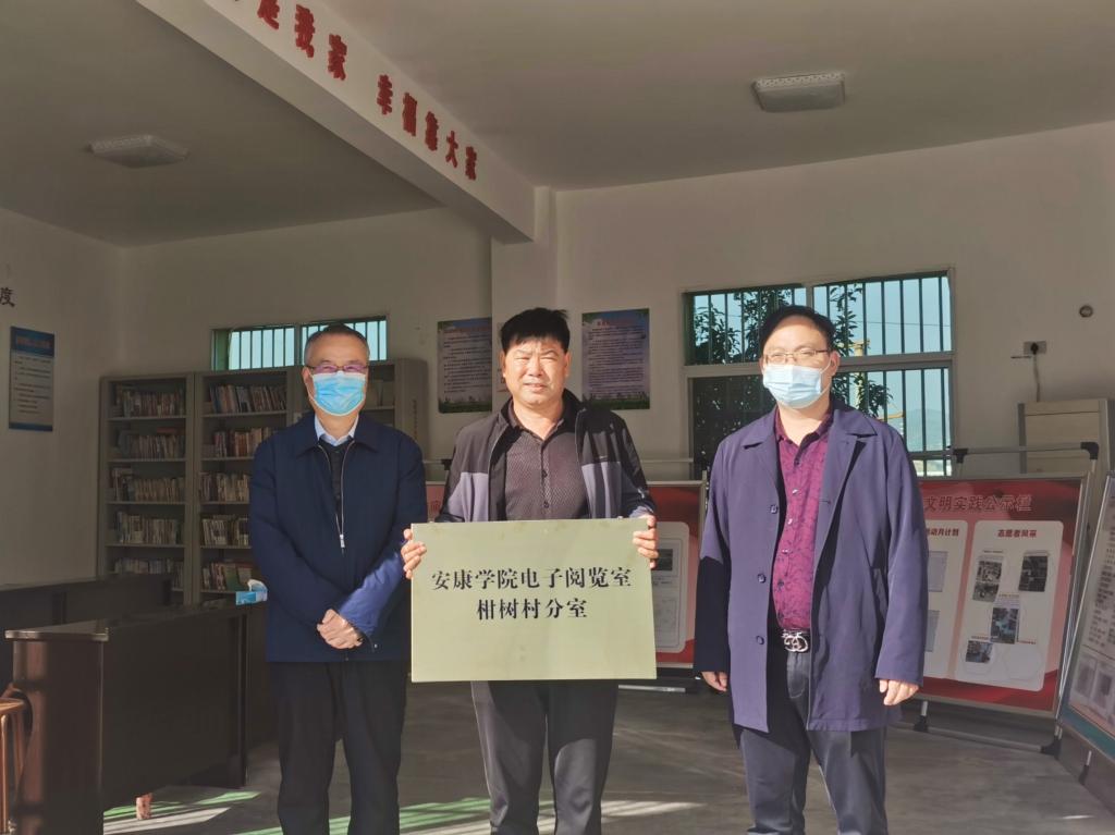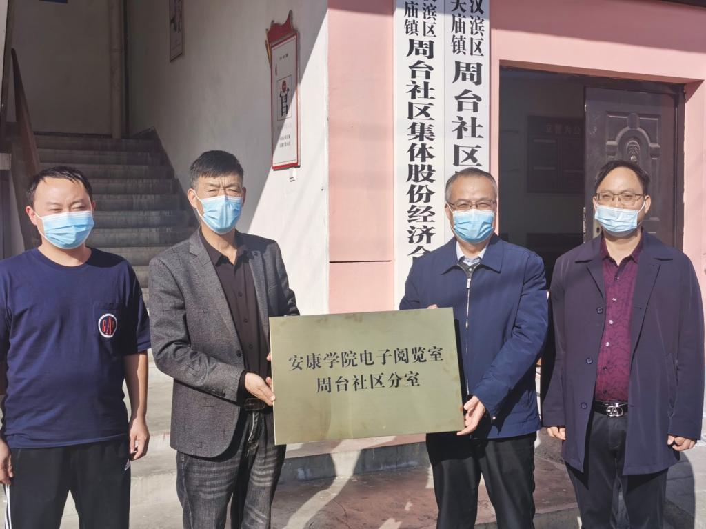 丁巨涛分别为我校援建周台社区和柑树村安康学院图书馆数字阅览室分室授牌。