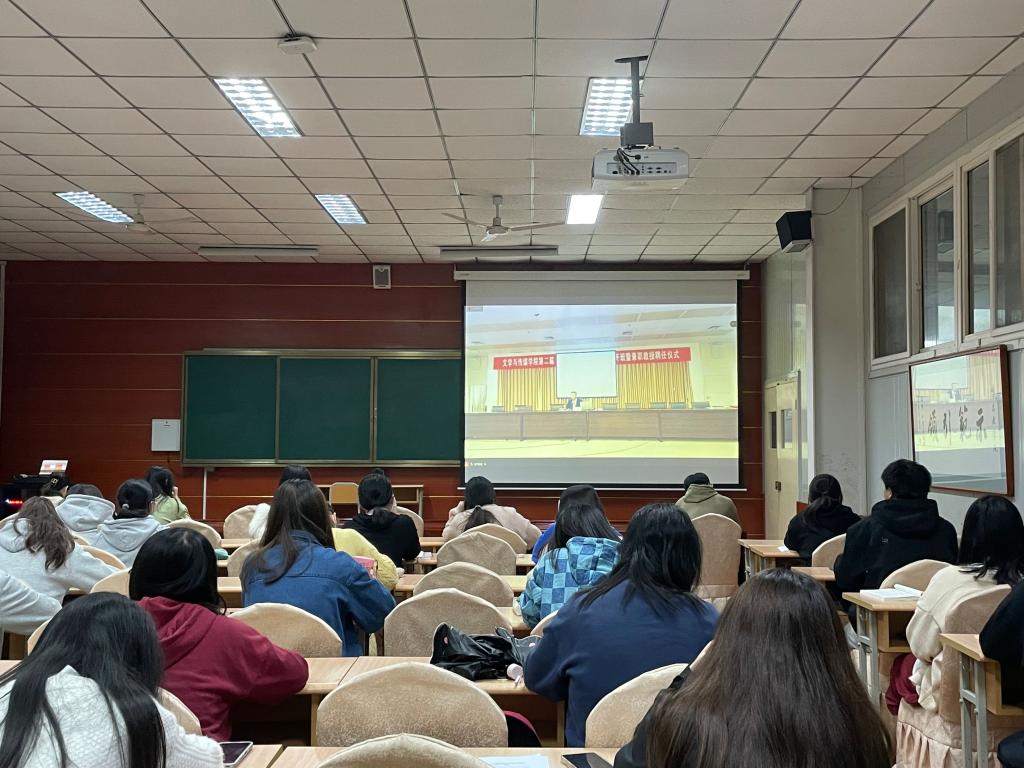 文传学院院长杨运庚宣读了《“中学语文卓越师资班”人才培养计划行动方案(试行)》和《“中学语文卓越师资班”学生达标规范和考核管理办法》两个文件,对“中学语文卓越师资班”开办的总体目标、主体内容和考核管理进行了解读,表示将结合汉语言文学师范专业认证,全面优化第二届“中学语文卓越师资班”的组织和管理,持续推动汉语言文学专业师范生人才培养质量的升级。