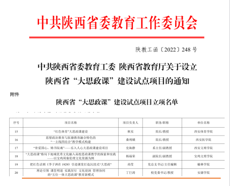 2022年以来,马克思主义学院与安康市政协联合申报的资政服务课题获批陕西省社科基金项目委托项目,获批陕西省“大思政课建设项目”1项,获批陕西省委宣传部、陕西省思政研究会委托课题2项,在A+出版社出版马学科学术专著一部,在《中国社会科学报》发表马学科论文3篇,丰富了学院马学科研究标志性成果,促进高质量发展。