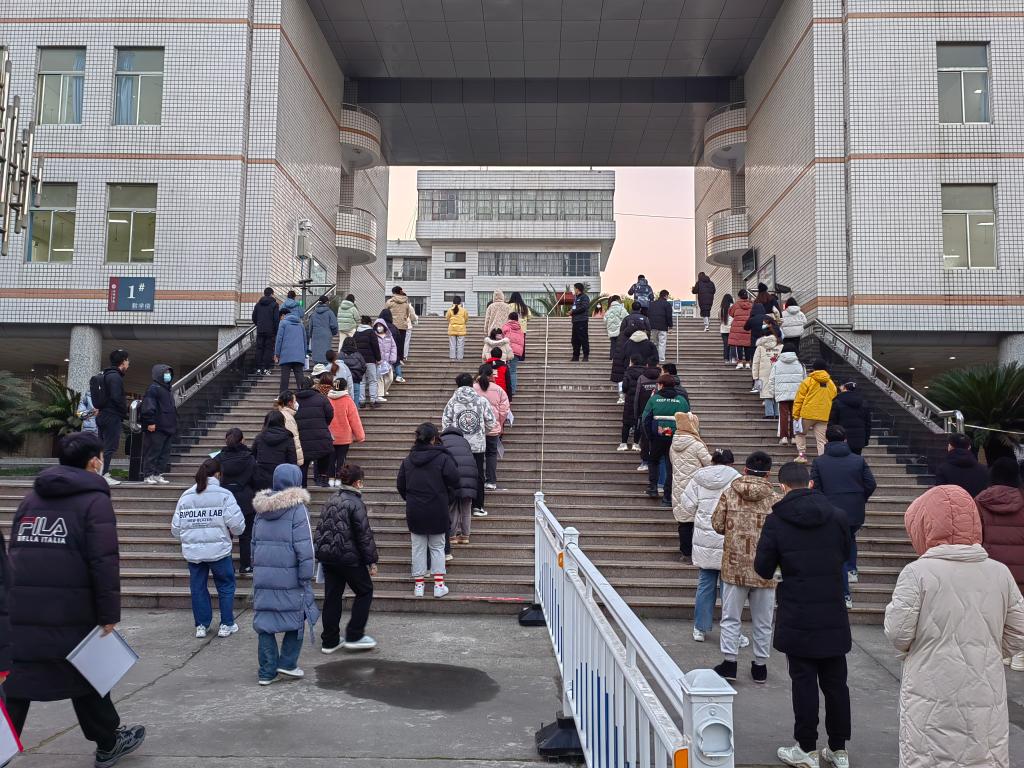 学校始终坚持以考生为本,不断优化服务水平,多途径为考生提供合理便利服务,积极营造温馨的考试环境。考前安排专人清理考区考场环境、检查维修教室桌椅、调试更换监控设备、校对时钟铃声系统、通风消杀考试区域,为考生提供安全考试场所。提前规划设置管理线路,安排专用休息场所,使用人脸识别设备,精准、高效审核考生身份,使考生“秒进”考点有了更佳体验。为保证考生有序、快速进入考场,学校在北门和教学楼前均设置了围栏,安排工作人员对不同类别考生进行引导分流,同时设计制作考试氛围海报展板、设置考区指示展架、路标引导等一系列举措,精细组织、精心安排、精诚服务,在寒冷的冬天,让考生感受到安康学院研招的温度和情怀。