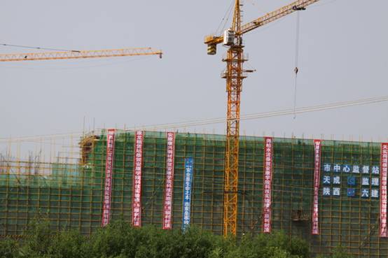 6月16日上午,新校区逸夫科技楼D区主体施工完毕。
