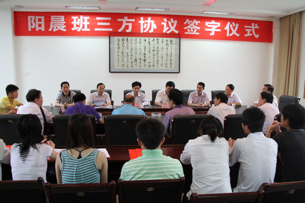 副院长陈刚对三方协议的签署表示祝贺,他指出,“阳晨班”是我院服务区域经济社会发展,拓宽办学渠道,创新办学模式的重要举措,学校各相关部门、相关院系要从各个方面予以大力支持,为学生学习创造良好条件。阳晨公司也将为同学们提供良好的实践条件和就业岗位,并为同学们未来发展规划了美好的蓝图,希望同学们珍惜这个难得的机会,严格要求自己,认真学习,勇于实践,圆满完成学业。
