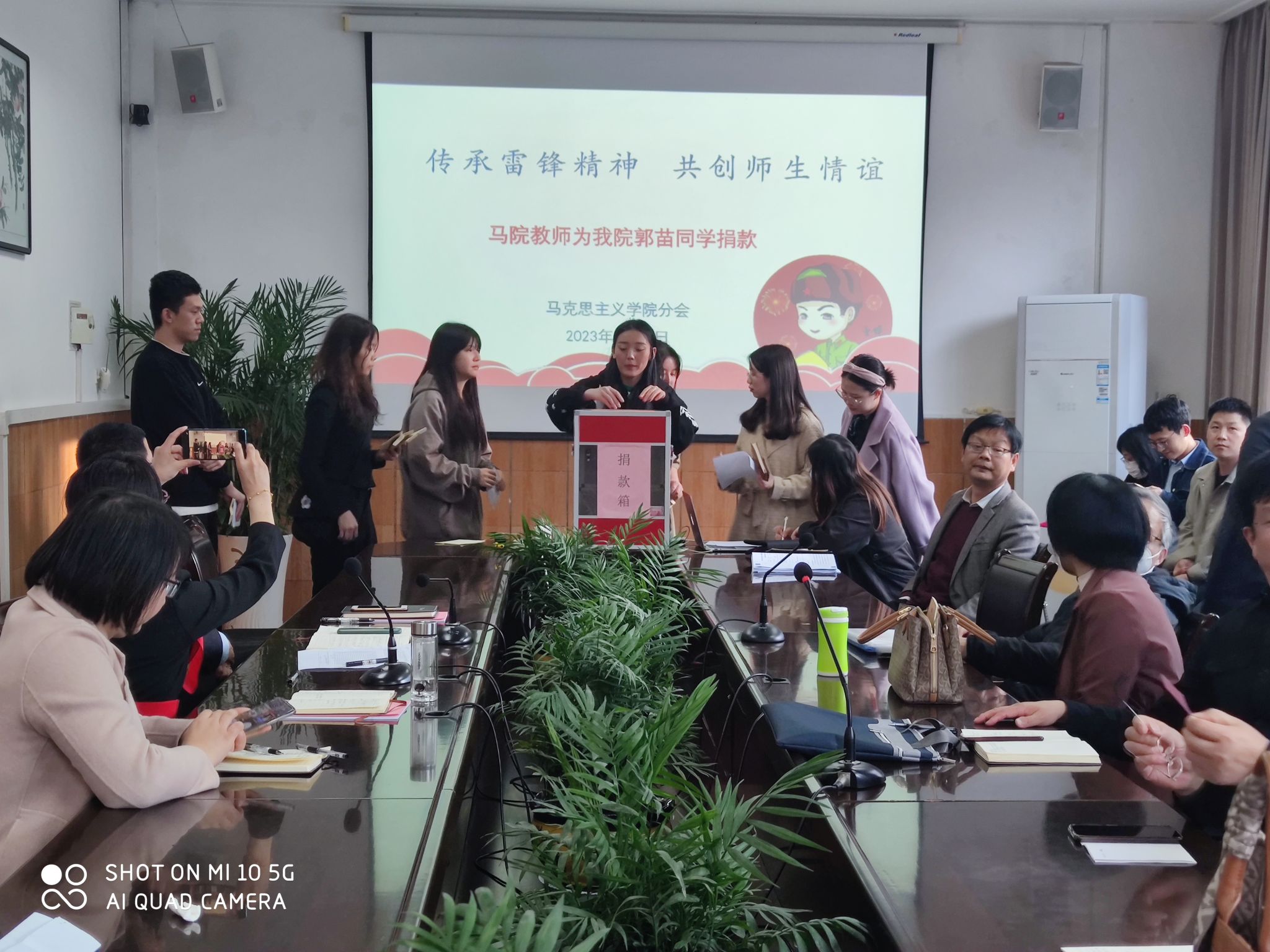 “我捐500元”“我捐200元”“我也捐……,希望郭同学早日康复!”3月15日下午,安康学院江南校区第一会议室里人头攒动,马克思主义学院师生们纷纷将一张张人民币投入捐款箱,自发为罹患重症的郭同学进行爱心捐款。