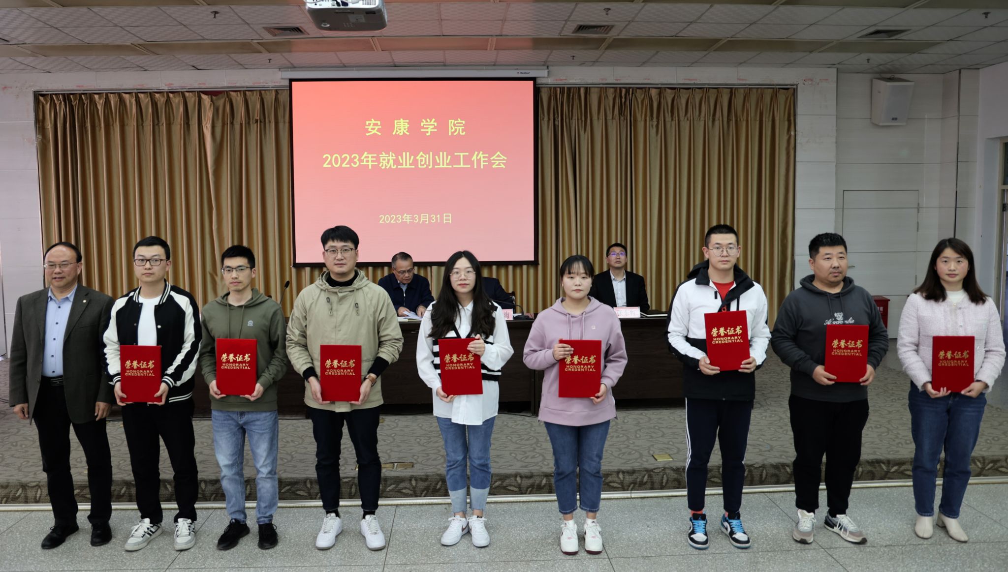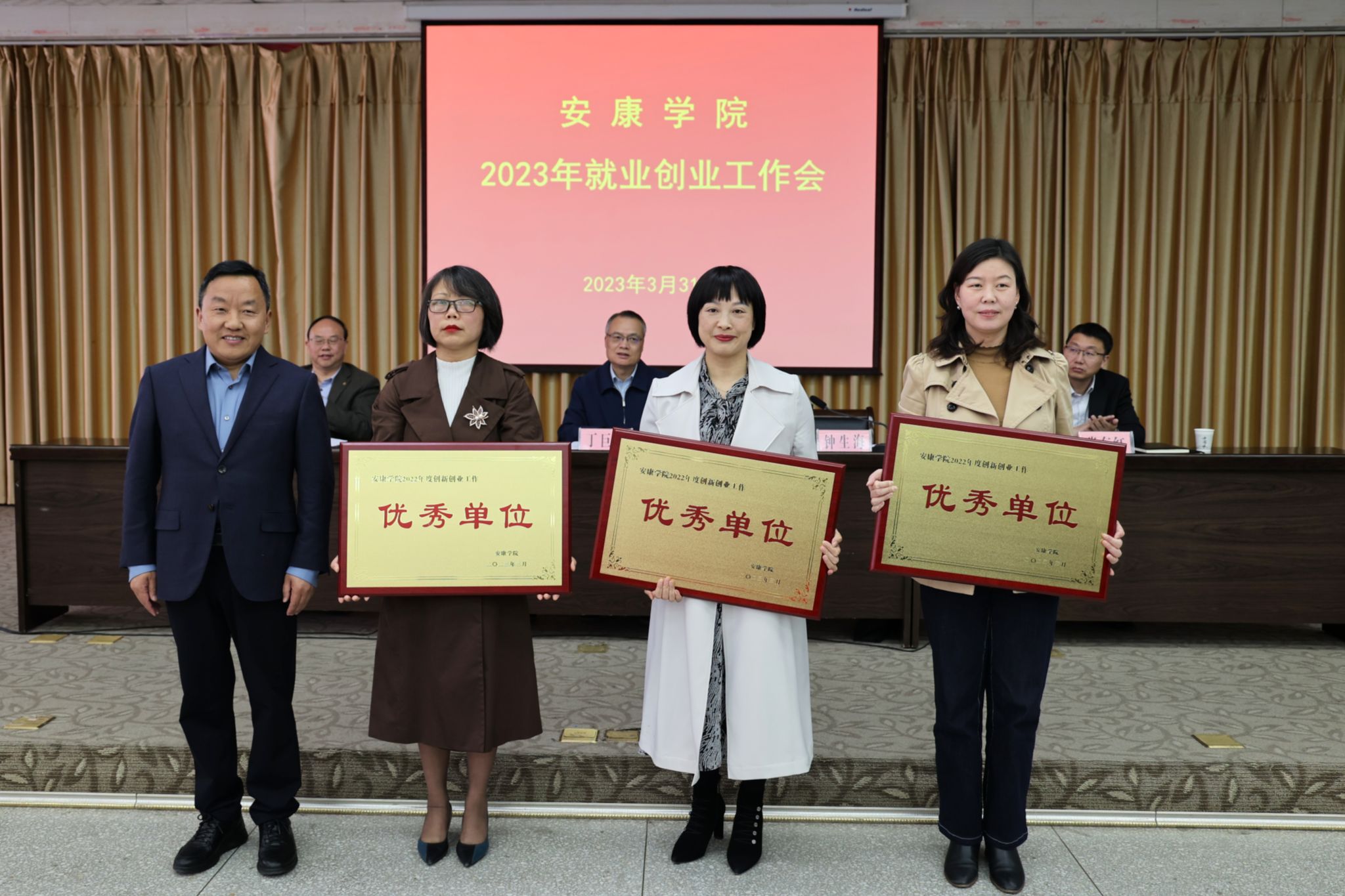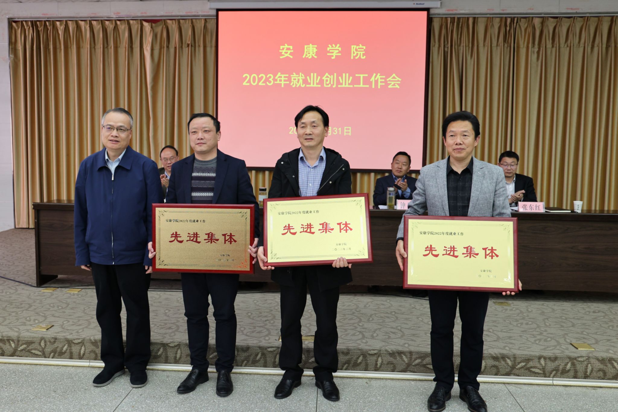 杨行玉宣读了《安康学院关于表彰2022年度就业创业工作先进集体、先进个人的决定》。学校领导为受表彰的先进集体和个人代表颁发了荣誉证书。