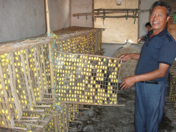 彩色茧的饲育分别在汉滨区五里镇刘营村、县河乡凡庙村、汉阴县汉阳镇金红村三个村设置了示范点,共发放优质彩色茧蚕种105张。通过收茧统计,彩色茧品种张产收入平均在2200元以上,蚕农高兴的说,“养‘彩蚕’,收金茧,换银钱”,充分表达出对天然彩色茧品种饲养的浓厚的兴趣和继续饲养彩色茧蚕品种的愿望。
