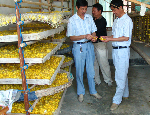 在彩色茧生产过程中,学院领导多次亲临现场检查指导工作,给这项工作的开展增加了无穷动力。省科技厅农村中心、安康市科技局及安康市蚕桑站等部门领导到示范点检查,对我院彩色茧品种成功饲育给予充分肯定的评价。