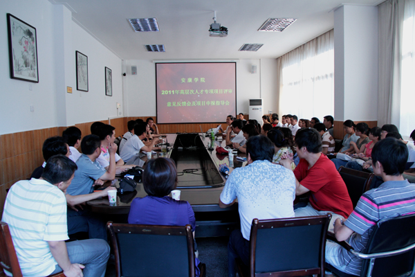 6月29日下午,我院召开“2011年高层次人才专项项目评审意见反馈会及项目申报指导会”,相关专家、各院系主管科研主任、申请2011年安康学院高层次人才专项项目的项目主持人及科技处相关工作人员等80余人参加了会议,会议由科技处处长刘强主持。