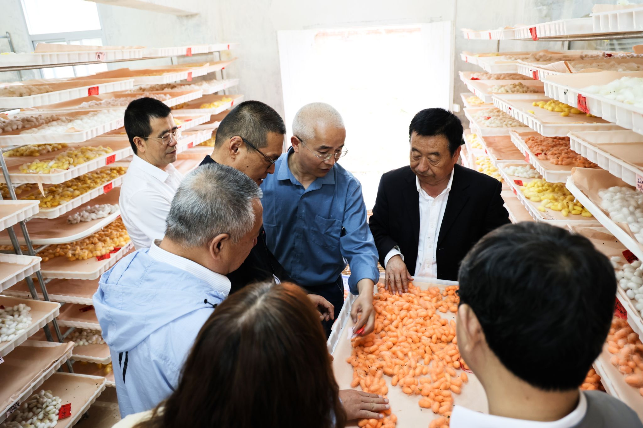 中国农业科学研究院蚕业研究所张健研究员、浙江省农业科学院蚕桑茶叶研究所所长王永强研究员等专家组成员,陕西省园艺技术工作站副站长张伟兵、正高级农艺师郭昶,安康市蚕桑产业发展中心黎文平科长以及我校蚕桑重点实验室全体成员参加了此次核查调研。
