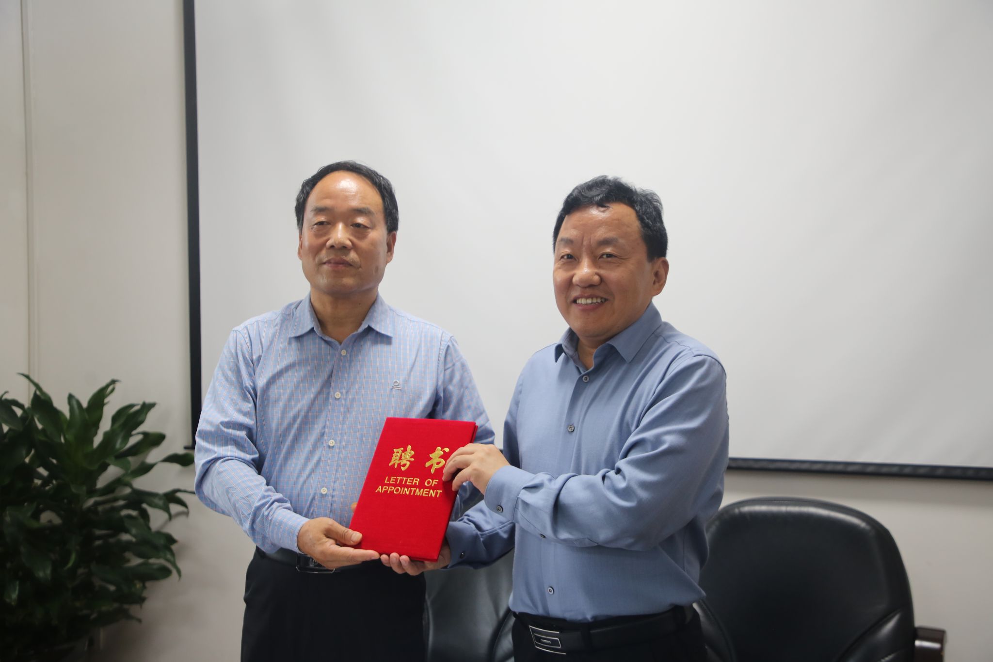 钟生海为张百忍研究员颁发聘书,签订了聘任协议。