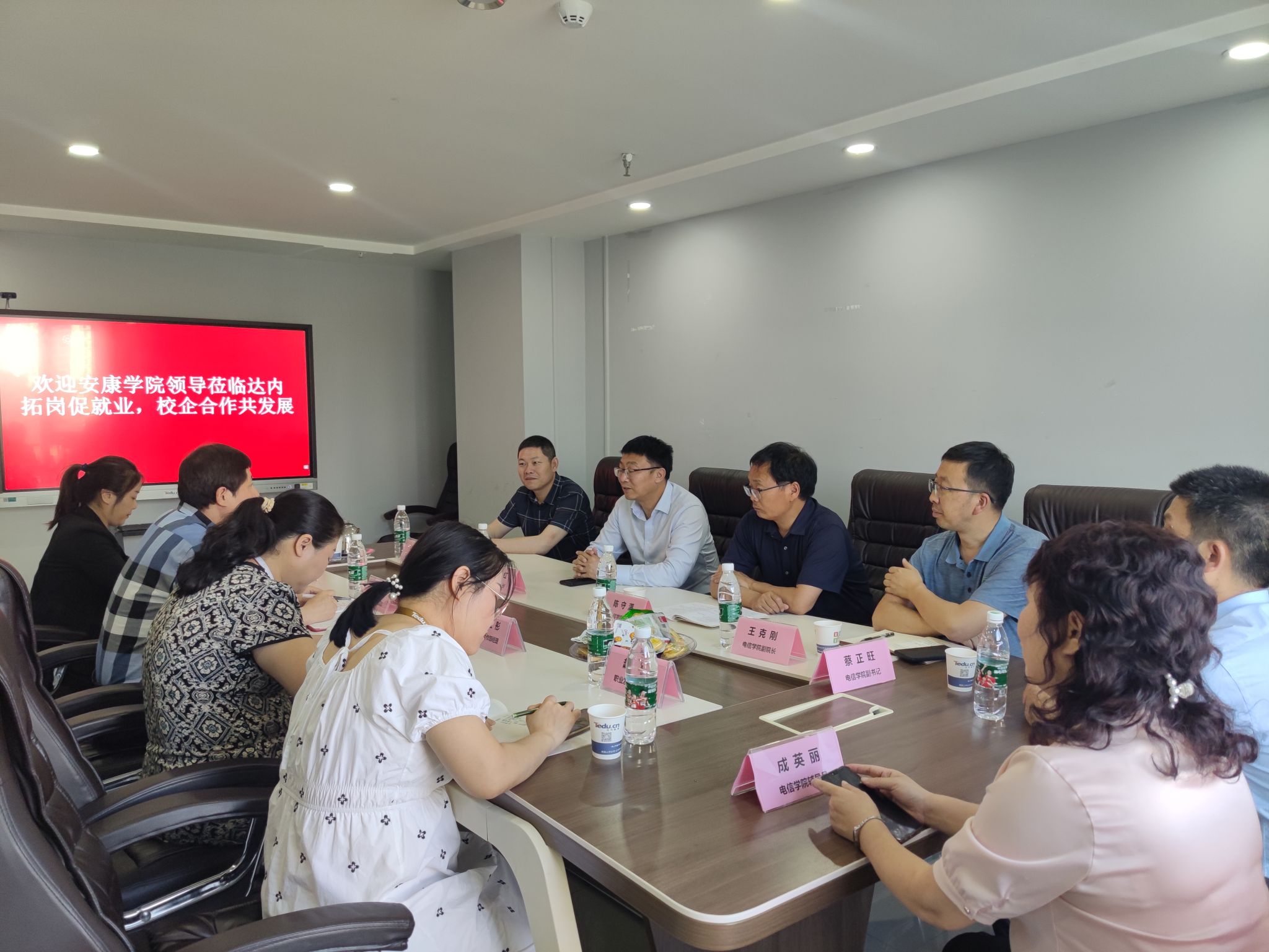 张东红表示,深入企业走访调研交流,能全面了解用人单位人才需求,为学校人才培养、就业指导提供依据,希望校企双方在人才培养、社会服务等方面进行全方位合作,积极为毕业生创造更大的成长和发展空间,搭建更好的平台为安康学院毕业生就业提供服务,安康学院也将积极促进人才培养与企业用人需求精准对接,为企业培养急需技术人才,实现毕业生更加充分、更高质量就业创业,更好地服务地方区域经济发展。陈守满、成波等分别就电信学院和数统学院专业设置、人才培养、办学特色、毕业生就业现状和校企合作模式等方面进行了交流。