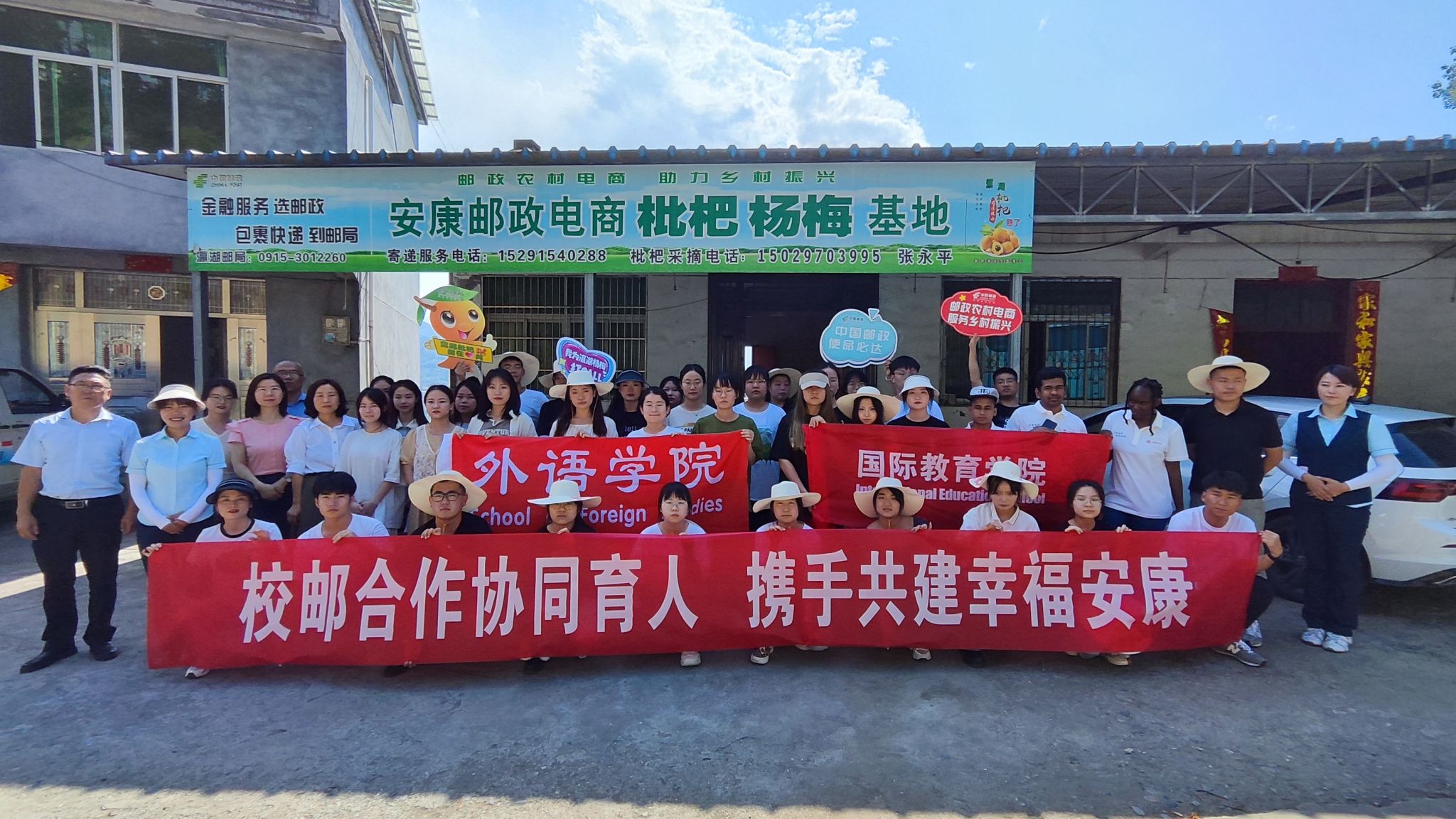 6月13日,我校外语学院、国际教育学院师生与安康邮政分公司联合开展的“双语助农直播促振兴”实践活动在瀛湖镇洞桥村枇杷基地举行。瀛湖镇党委副书记杨杰、江南邮政瀛湖邮局支局长冯尚波、外语学院副院长胡卫卫出席本次研学活动。我校外语学院跨境电商专业、国际教育学院师生共计50人受邀参加本次活动。
