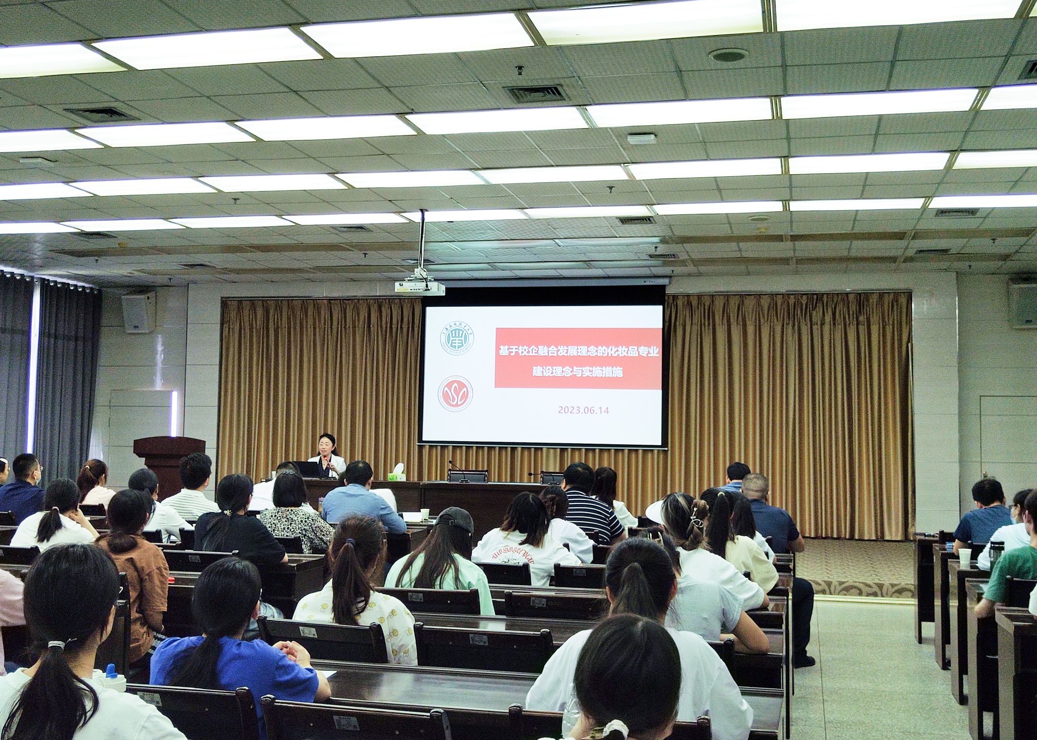 6月14日下午,上海应用技术大学国际化妆品学院、东方美谷研究院执行院长张婉萍教授应邀来我校作了题为“基于校企融合发展理念的化妆品专业建设理念与实施措施”的报告。副校长余谦致欢迎词。化工学院院长柳林主持报告会。
