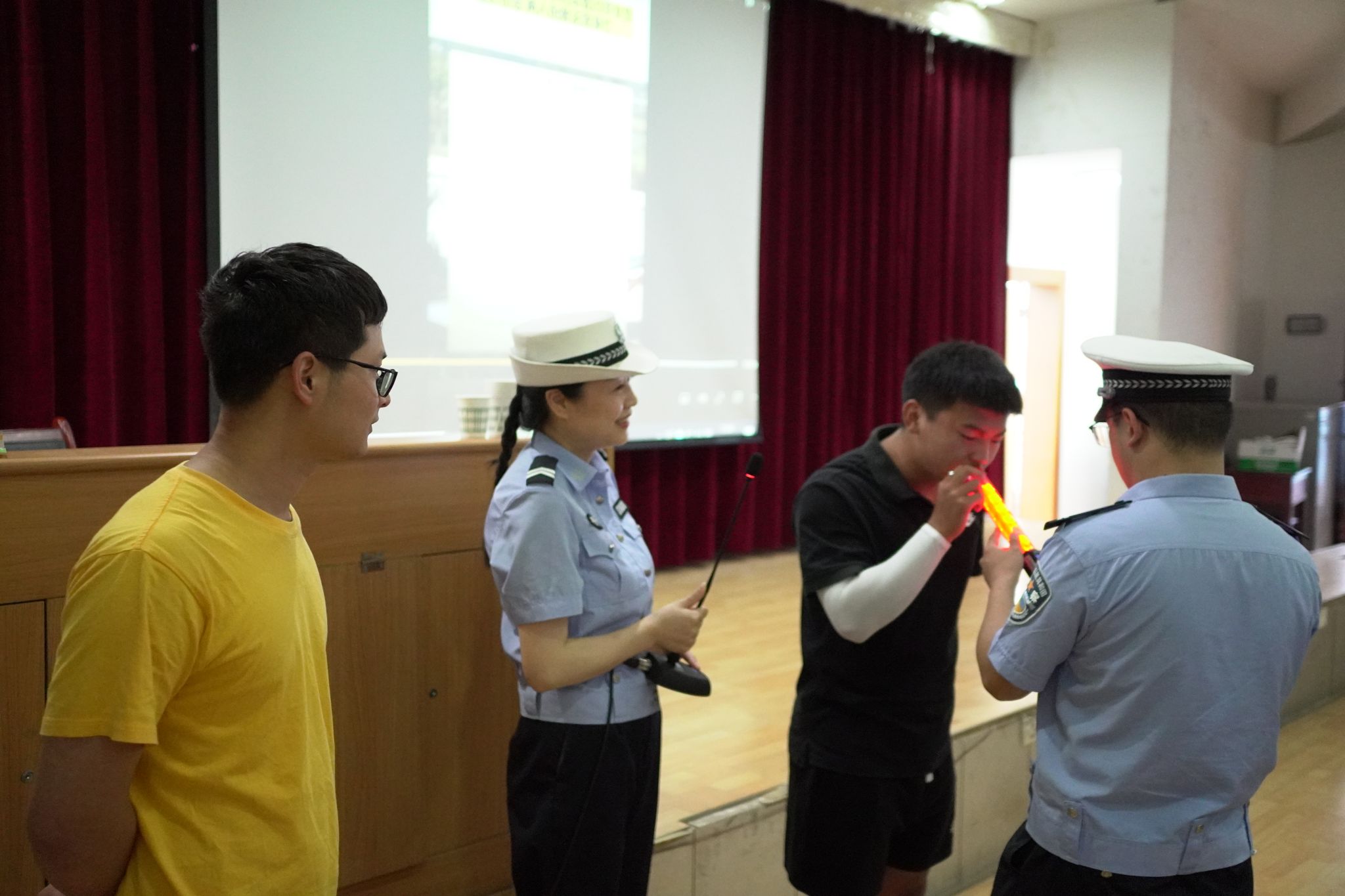 活动中,交通民警通过发生在城区及校园周边的视频案例,阐述了驾乘摩托车、电动车不佩戴头盔、酒驾醉驾、无证驾驶等不法行为的危害及后果,并现场发放了安全知识宣传资料。