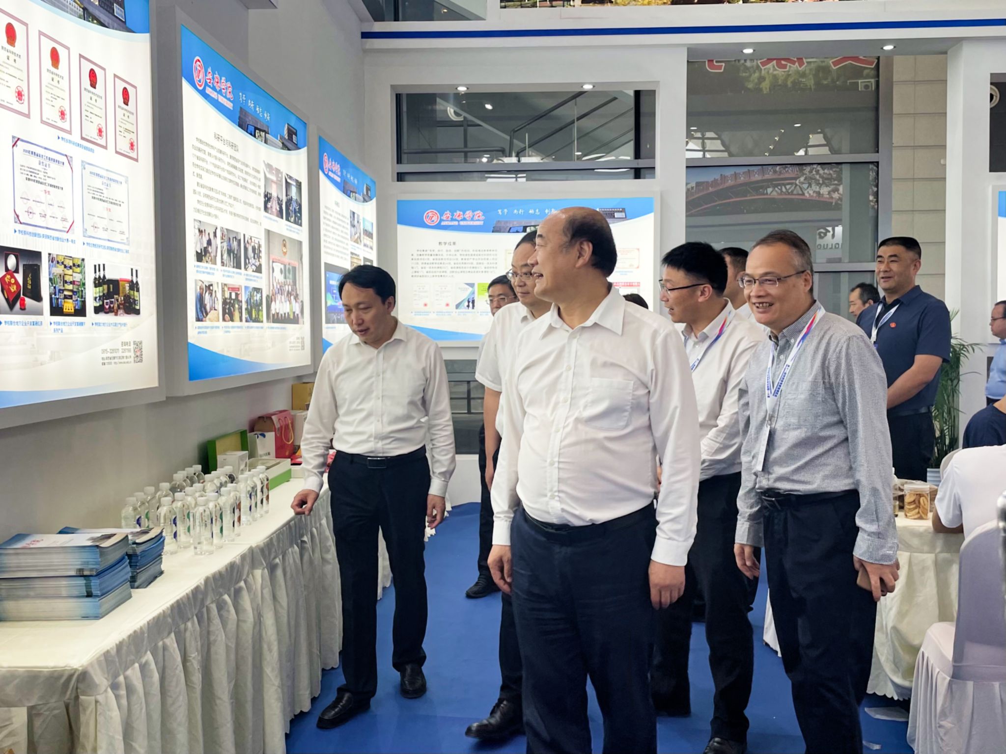 参展期间,学校党委书记丁巨涛、副校长张东红检查指导我校布展工作,看望慰问展会工作人员和师生。