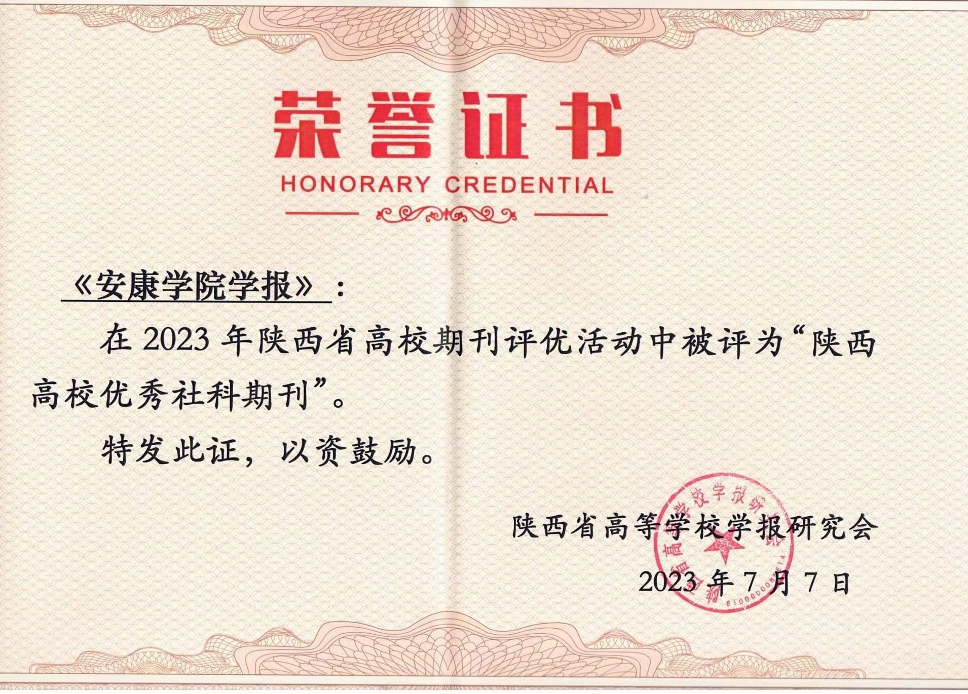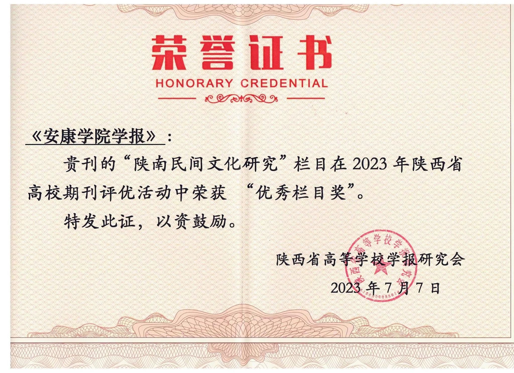 会议正式公布了2023年陕西省高校学报评优结果,并向获奖单位及个人授奖。《安康学院学报》被评为“陕西高校优秀社科期刊”,“陕南民间文化研究”栏目荣获“优秀栏目奖”。