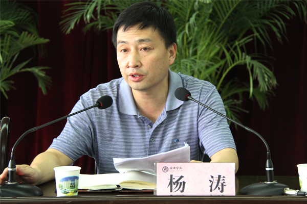 杨涛要求全院干部职工要认真学习胡锦涛总书记在清华大学百年校庆的讲话,学习“七一”讲话精神,学习中省教育规划纲要及实施意见,学习学院党委工作报告,切实把握精神实质,把全院师生的思想统一到学院“十二五”发展的基本方略上来,为学院科学发展提供坚强的思想保障。杨涛还指出,蓝图既定,重在落实。各院系、各部门要根据工作任务和目标,明确分解指标任务,强化工作责任,层层落实工作任务;要紧紧依靠全体党员群众,充分调动广大师生的积极性;各单位要制定科学合理、切实可行的实施方案,采取有力措施,把工作落到实处;要建立健全监督机制,强化督察督办,为学院科学发展提供组织和制度保障。在谈到新校区建设时,杨涛特别强调指出,新校区建设是我院破解办学瓶颈,改善办学条件,奠定未来发展基础的必然选择。目前新校区正处在一期工程全面建设的攻坚阶段,全体干部都要有紧迫感和责任意识,都要全力以赴支持新校区建设,确保新校区建设任务保质、保量、按期完成。