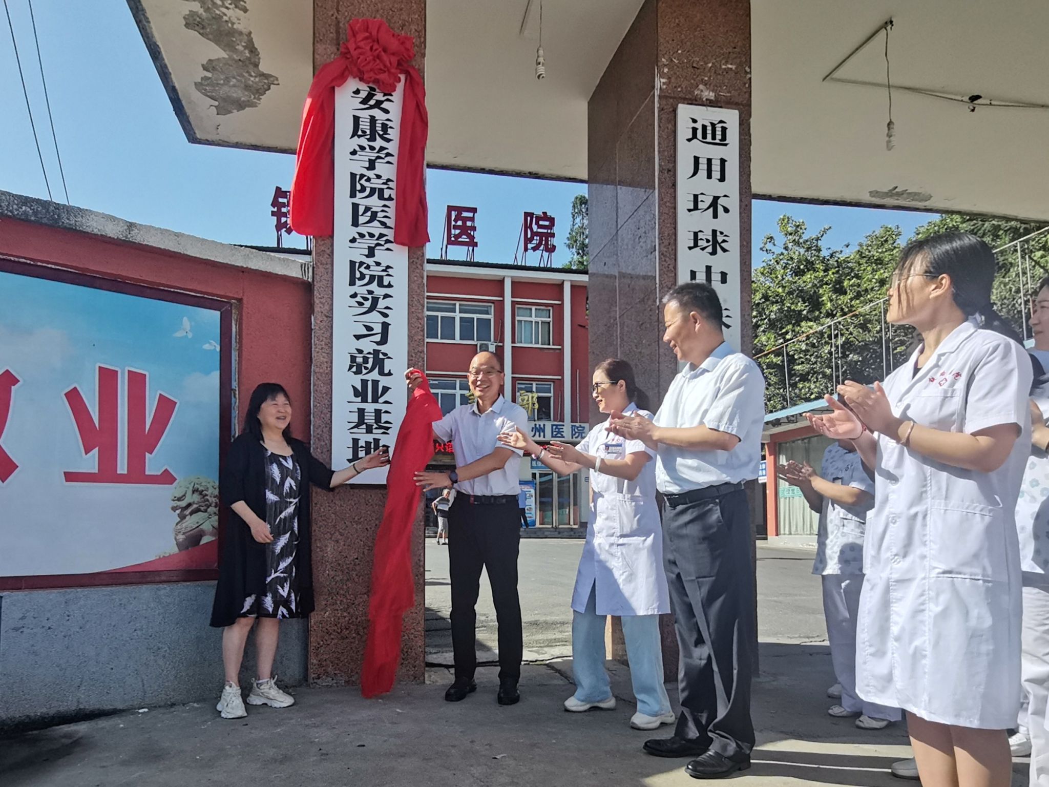 会上,医学院党委书记刘连德与王荣共同进行授牌,谢娟平与华州区卫健局副局长李育民共同揭牌,通用环球中铁华州医院正式成为医学院实习基地。